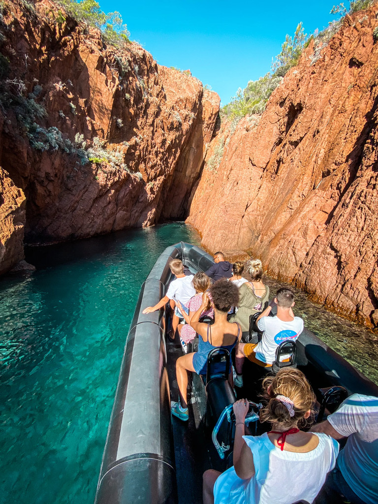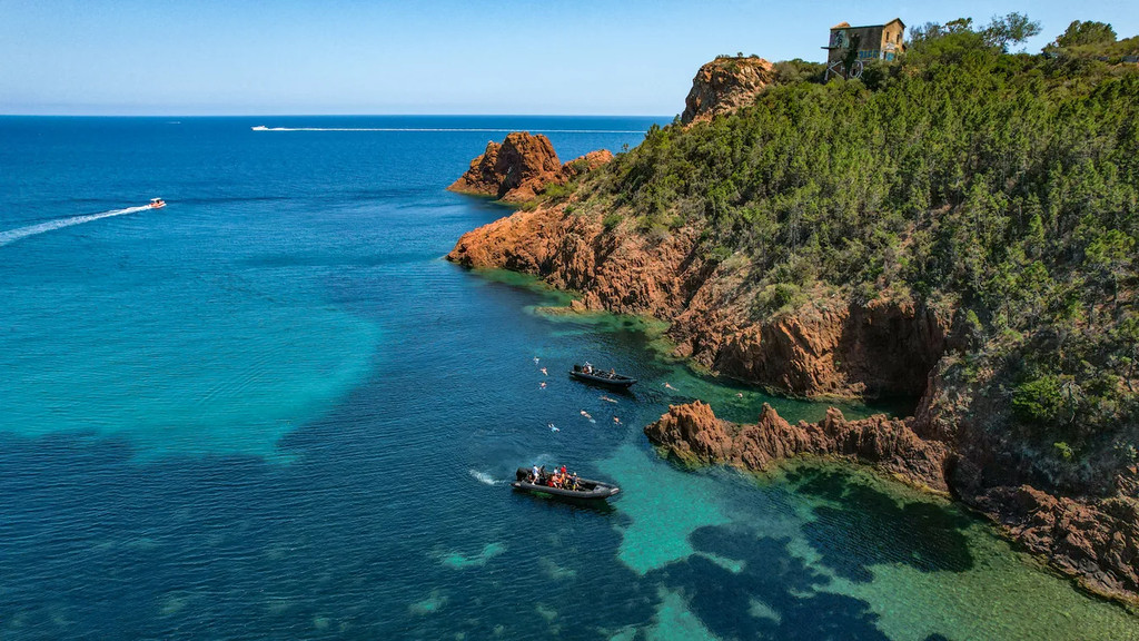 Votre capitaine local passionné vous guidera à travers le massif de l’Estérel, vous révélant les secrets de ses célèbres roches rouges, de sa géologie unique et de sa vie marine abondante. Grâce à nos semi-rigides agiles, vous explorerez des criques isolées et des calanques sauvages que les grands navires ne peuvent tout simplement pas atteindre.