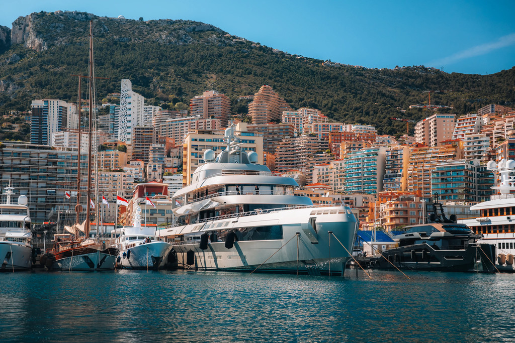 - 4Monaco vue depuis le large : le Rocher, les yachts, le Casino Monte-Carlo.