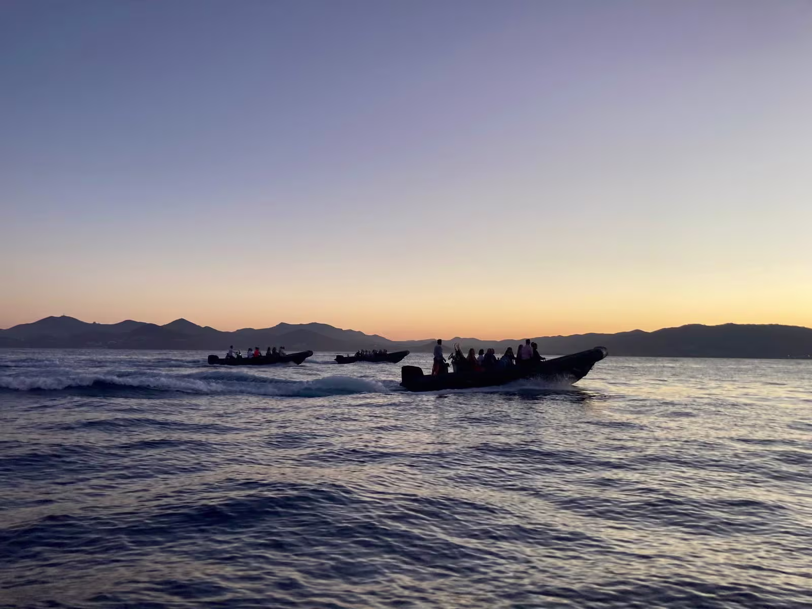 À bord de nos semi-rigides, cap sur les îles de Lérins au coucher du soleil. Entre Sainte-Marguerite et Saint-Honorat, la lumière dorée enveloppe les eaux turquoise de la baie. Une heure de navigation pour rejoindre les meilleures loges, loin de la foule compressée sur la Croisette.